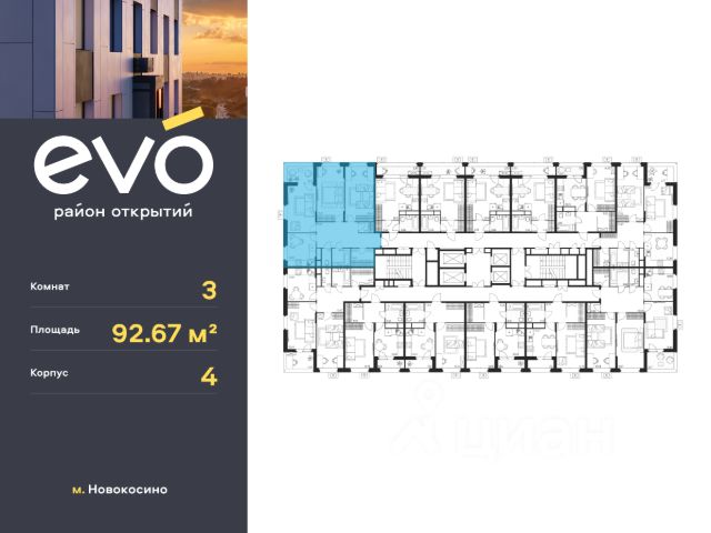 Продается трекомнатная квартира 92.67 кв.м. в жилом комплексе EVO на 17 этаже по адресу: Московская область, г. Реутов, ул. Комсомольская. Скидка 10% при полной оплате!* EVO - проект комфорт-класса от девелопера Dogma. Каждый житель сможет открыть для себя максимум возможностей. Совершенствоваться во всех направлениях: физическом, эмоциональном и материальном. В EVO можно открыть для себя новые виды спорта, найти единомышленников по хобби, партнеров по бизнесу, развивать в детях новые грани, наслаждаться природой и лаконичной архитектурой. Более 6 га благоустройства в первой очереди! - Зеленый двор без машин, кленовая аллея для прогулок. - Нейродинамические площадки для детей разных возрастов. - Workout зона, столы для пинг-понга, места для занятия йогой. велодорожки и дорожки для скандинавской ходьбы. - Детский сад на 180 мест и школа на 750 мест. - Кроссбукинг. - Лобби с зоной ожидания, колясочной и лапомойкой. - Магазины и кафе на первых этажах. БЕЗОПАСНОСТЬ - Закрытая территория. - Круглосуточное видеонаблюдение. - Контроль доступа. РАСПОЛОЖЕНИЕ Пешком - 7 минут до станции Реутов. - 20 минут до метро Новокосино. На машине - 4 минуты до МКАД. - 6 минут до шоссе Энтузиастов. - 9 минут до Носовихинское шоссе. - 13 минут до МСД (Московский скоростной диаметр). СОЦИАЛЬНАЯ ИНФРАСТРУКТУРА В первой очереди предусмотрено строительство детского сада на 180 мест и школы на 750 учащихся. В 10 минутах ходьбы от EVO находится детский технопарк "Изобретариум", в котором более 60 научных секции: от IT до промышленного дизайна. Для творческих ребят рядом есть художественная и музыкальные школы, хоровая студия. ОКРУЖЕНИЕ - Реутовский центральный парк, Александровский сквер, Фабричный пруд. - ТЦ "Экватор", ТК "Шоколад". - Спортивный комплекс "Старт", Ледовый комплекс "Реутов Арена". - Музей-усадьба "Кусково". *Подробности уточняйте по телефону. Продается 3-комнатная квартира первичка в Реутове.