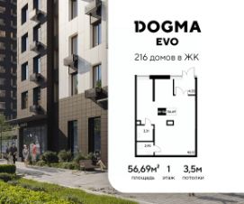 В продаже от застройщика! ЖК "EVO" г. Реутов, Литер Срок сдачи: 2 кв. 2026, общей площадью 56.69 кв.м.,на 1 этаже. EVO проект комфорт-класса в стиле модернизма,главный принцип которого заключается в создании новой архитектуры, соответствующей духу современности...