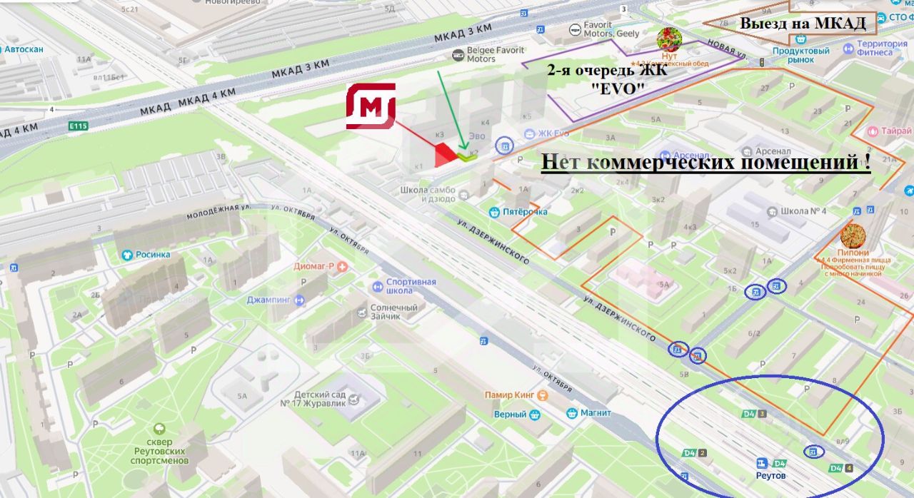 -9 минут пешком от станции МЦД-4 Реутов и 20 минут пешком от станции метро Новокосино;