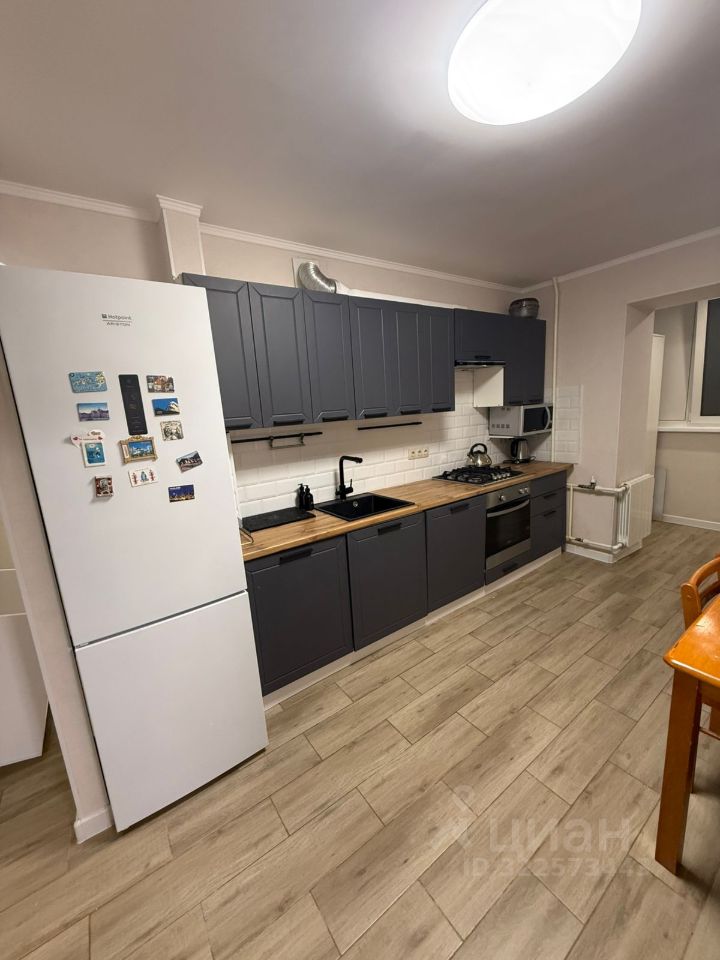 В квартире есть всё необходимое для комфортного проживания: современная мебель на кухне и в комнате, а также полный комплект бытовой техники — холодильник, телевизор, посудомоечная и стиральная машины. Ванная комната оснащена ванной, а для удобства жильцов установлен мусоропровод. В квартире также есть лоджия, где можно организовать дополнительное место для отдыха или хранения.