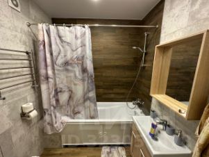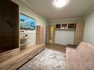 Сдаётся просторная 1-комнатная квартира 43 кв. м (с лоджией 53 кв. м). Квартира оборудована всей необходимой для проживания мебелью и техникой: есть кухонный гарнитур, плита, вытяжка, стиральная машина, телевизор, холодильник, пылесос. В квартире сделан качественный ремонт, все необходимое для проживания куплено (вплоть до тарелок). Есть просторный гардероб, в комнате шкафы предназначены также для одежды. В лоджии теплые полы, так что там можно сделать еще одну комнату. Все 3 дивана в квартире раскладываются в спальное место.