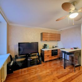 В квартире выполнен ремонт в формате студии и пространство условно разграничено на кухню примерно 9 м2 и комнату примерно 17 м2. Санузел совмещенный, полы в квартире из лиственницы. В квартире установлена встроенная кухня с техникой, в прихожей встроенный и очень функциональный шкаф купе, с встроенным двухкамерным холодильником, в ванной комнате установлена стиральная машина, а комната оборудована эффектным электрическим камином. Окна выходят на южную сторону. Панорамный вид из окон. Балкон в квартире отделан и остеклен стеклопакетами с теплым профилем, на балкон проведено освещение и розетка.