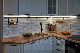 * Диодные ленты в нише на кухне