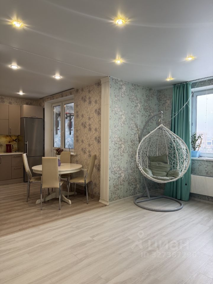 Большая кухня-гостиная с большим количеством мест для хранения посуды и продуктов. Есть вся необходимая техника. С кухни выход на застекленную и отделанную лоджию. Здесь обустроено комфортное рабочее место и турник для занятия спортом. В гостиной все взгляды притягивает плетеное кресло-качалка, здесь так приятно будет маме отдыхать вечерами и смотреть на свою счастливую семью! Комфортный диван и огромный телевизор позволят наслаждаться хоть просмотром фильмов, хоть новостей.