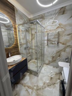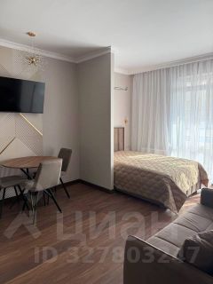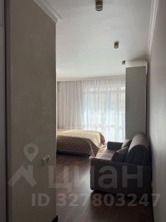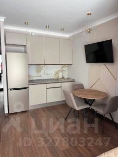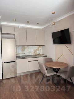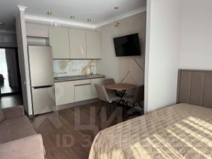 В квартире есть дизайнерский ремонт, который создаёт атмосферу уюта и комфорта. Мебель на кухне и в комнате подобрана с учётом функциональности и стиля. В студии установлена вся необходимая техника: кондиционер, холодильник, телевизор и стиральная машина. Санузел совмещённый, оборудован душевой кабиной. Также есть лоджия для отдыха и свежего воздуха.