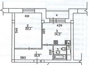 Общая площадь квартиры 54 кв.м, площадь комнаты 22 кв.м, кухня 15 кв.м, санузел совмещенный.
