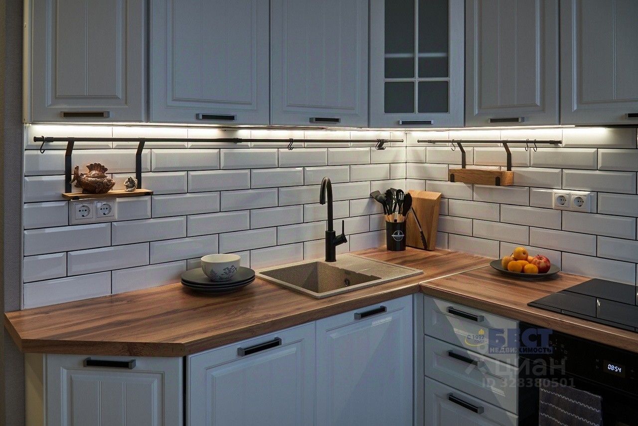 * Диодные ленты в нише на кухне
