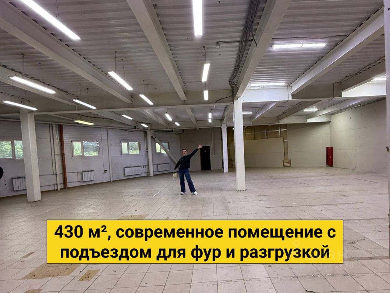 Площадь склада: 430 м², современное помещение с подъездом для фур и разгрузкой