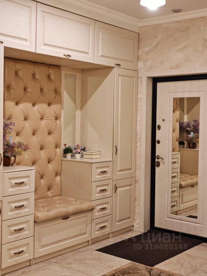 Общая площадь квартиры составляет 123 кв. м, жилая площадь — 68 кв. м, а кухня впечатляющих размеров — 28 кв. м. Квартира расположена на 19 этаже 24-этажного монолитно-кирпичного дома, построенного в 2019 году. Во всех