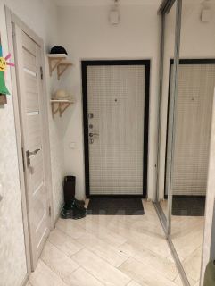 Просторный встроенный шкаф в коридоре обеспечивает невероятно вместительное место хранения для всего, включая коляски, велосипеды, самокаты, одежды и обуви всех сезонов и т.д. Также для хранения в квартире оборудована гардеробная и встроенный шкаф в спальне.