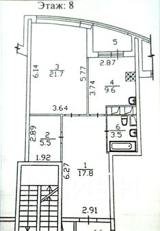 Общая площадь квартиры - 61,5 кв.м (без лоджии 58,1 кв. м), комната - 21,7 кв. м, кухня 9,6 кв. м, просторный холл - 17, 8 кв. м, есть кладовая 5,5 кв.м, санузел совмещенный -3,5 кв.м, лоджия 3,4 кв. м с выходом из кухни, застеклена.