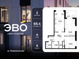 Продается двухкомнатная квартира 65.35 кв.м. в жилом комплексе ЭВО на 4 этаже по адресу: Московская область, г. Реутов, ул. Комсомольская. Скидка 10% при полной оплате!*
