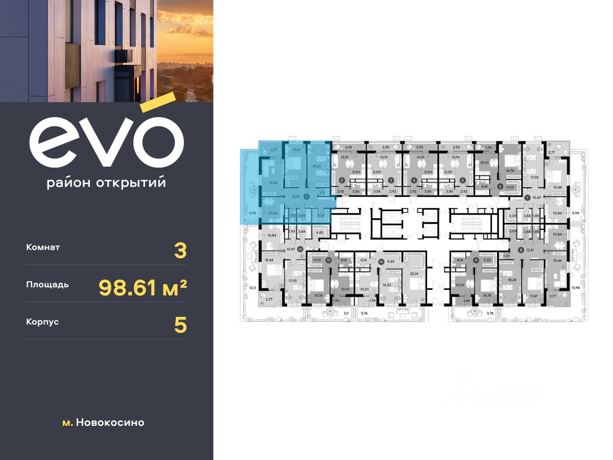 Продается трекомнатная квартира 98.61 кв.м. в жилом комплексе EVO на 2 этаже по адресу: Московская область, г. Реутов, ул. Комсомольская.