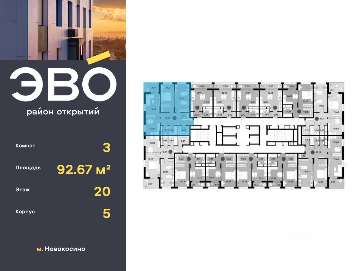 Продается трекомнатная квартира 92.67 кв.м. в жилом комплексе ЭВО на 12 этаже по адресу: Московская область, г. Реутов, ул. Комсомольская. Скидка 10% при полной оплате!*