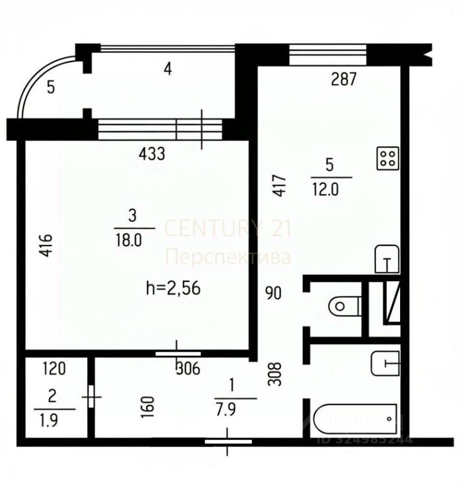 Общая площадь: 45 м - достаточно места для воплощения ваших дизайнерских идей.