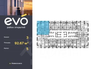 Продается трекомнатная квартира 92.67 кв.м. в жилом комплексе ЭВО на 3 этаже по адресу: Московская область, г. Реутов, ул. Комсомольская. Скидка 15% на выделенный пул двухкомнатных и трёхкомнатных квартир с готовностью в 2026 году!*