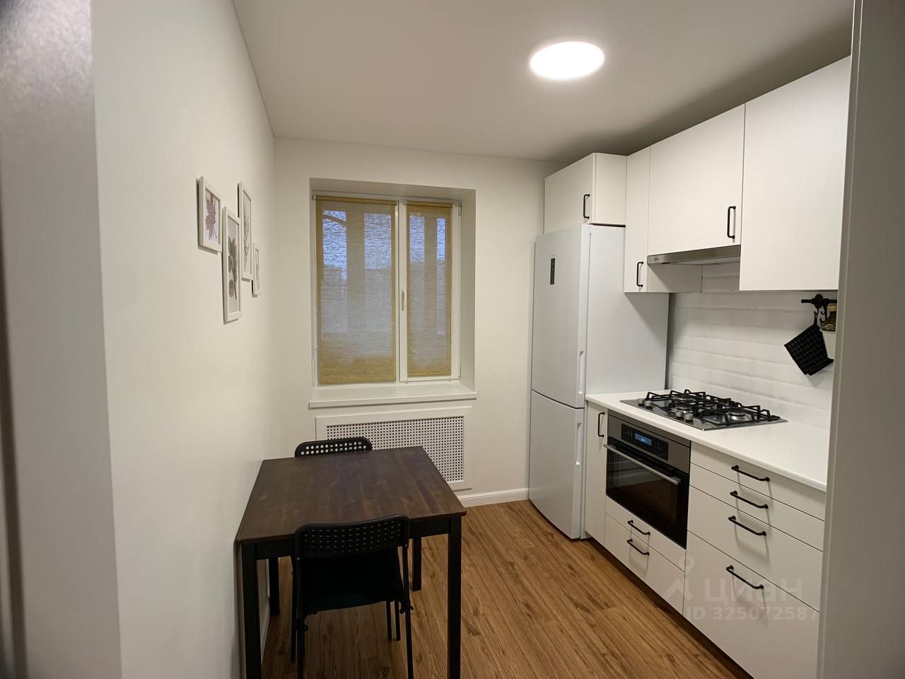 * на кухне: кухня Икеа, газовая варочная поверхность, духовой шкаф с функцией микроволновки, холодильник, вытяжка, проточный фильтр для воды, стол и стулья;