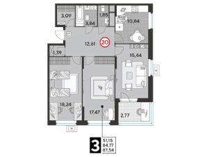 Продается трекомнатная квартира 87.54 кв.м. в жилом комплексе EVO на 3 этаже по адресу: Московская область, г. Реутов, ул. Комсомольская. Скидка 10% при полной оплате!*