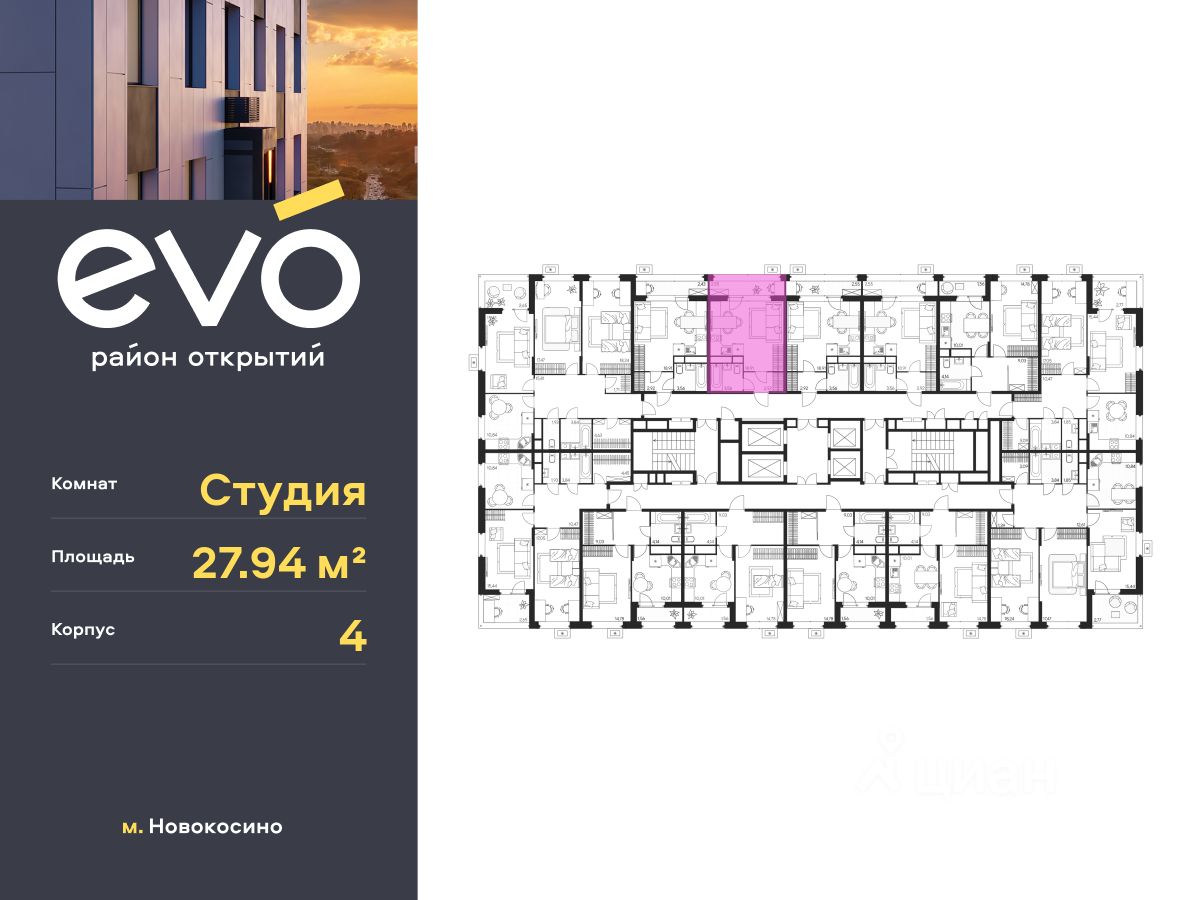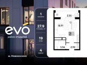Продается студия 27.94 кв.м. в жилом комплексе EVO на 19 этаже по адресу: Московская область, г. Реутов, ул. Комсомольская. Скидка 10% при полной оплате!*