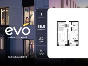 Продается однокомнатная квартира 39.52 кв.м. в жилом комплексе EVO на 22 этаже по адресу: Московская область, г. Реутов, ул. Комсомольская. Скидка 10% при полной оплате!*