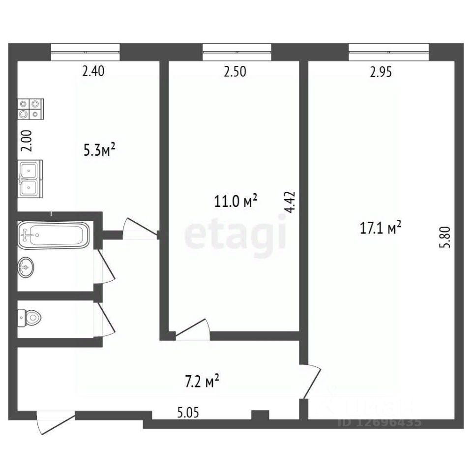 Koмнaты изoлированные, санузел раздельный .