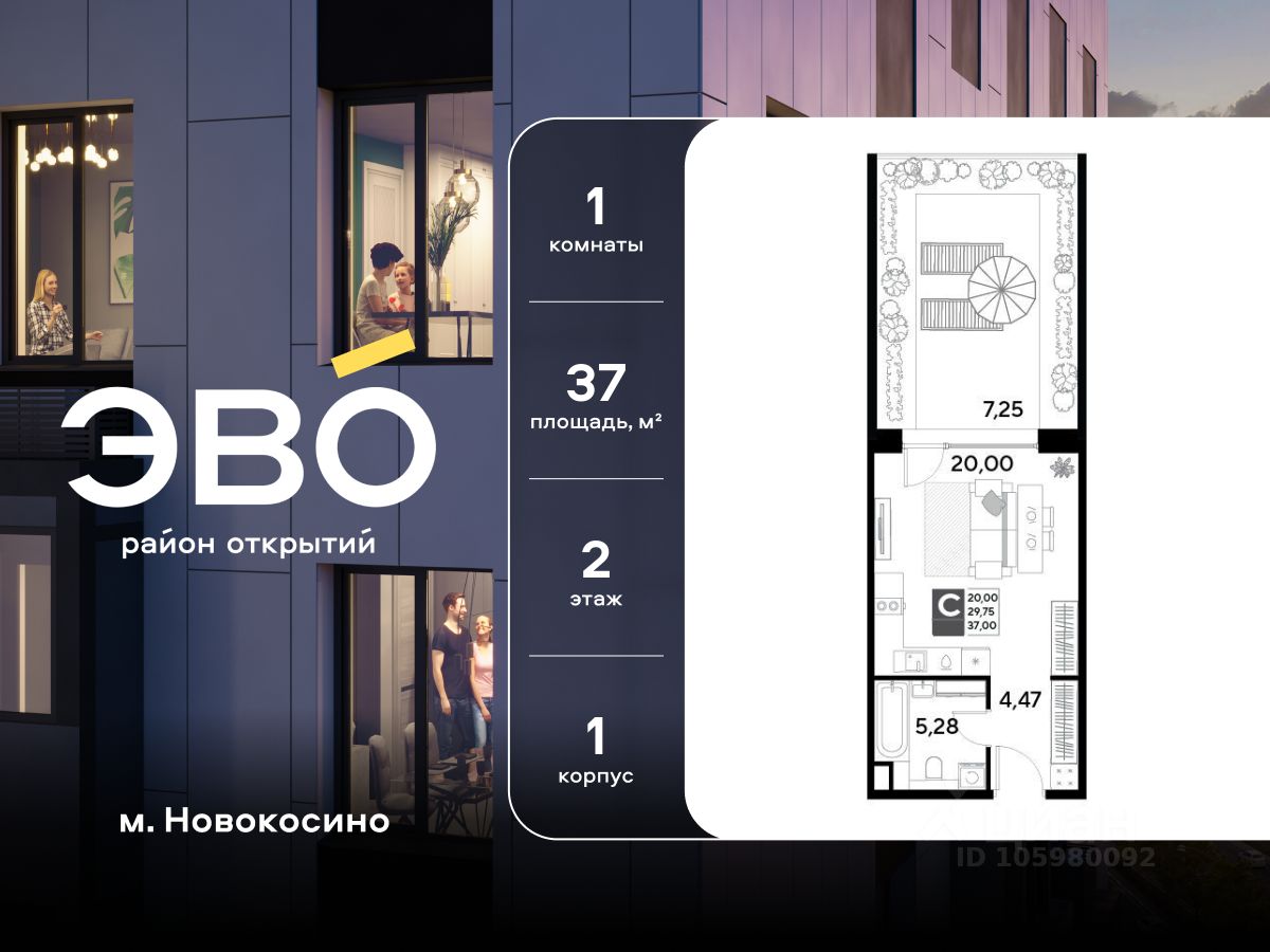Продается студия 37.00 кв.м. в жилом комплексе ЭВО на 2 этаже по адресу: Московская область, г. Реутов, ул. Комсомольская. Скидка 10% при полной оплате!*