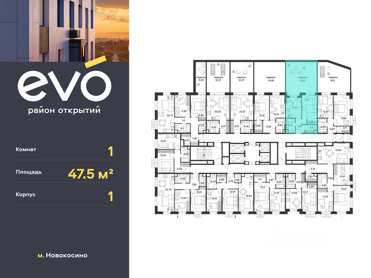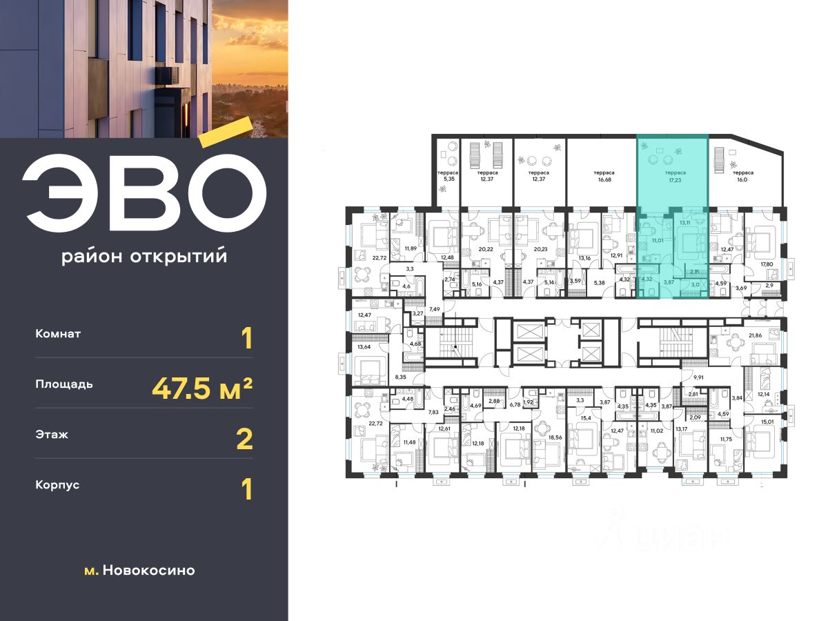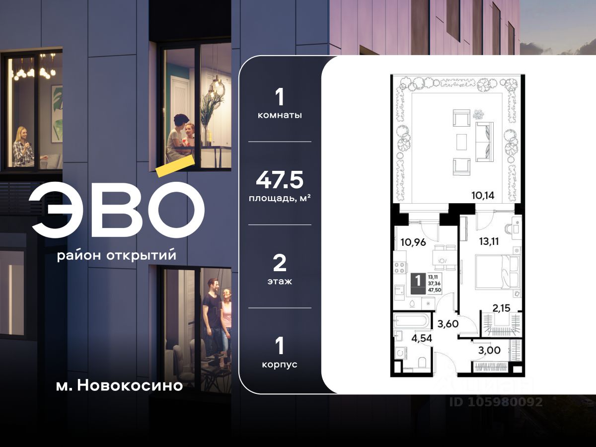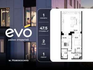 Продается однокомнатная квартира 47.50 кв.м. в жилом комплексе ЭВО на 2 этаже по адресу: Московская область, г. Реутов, ул. Комсомольская. Скидка 10% при полной оплате!*