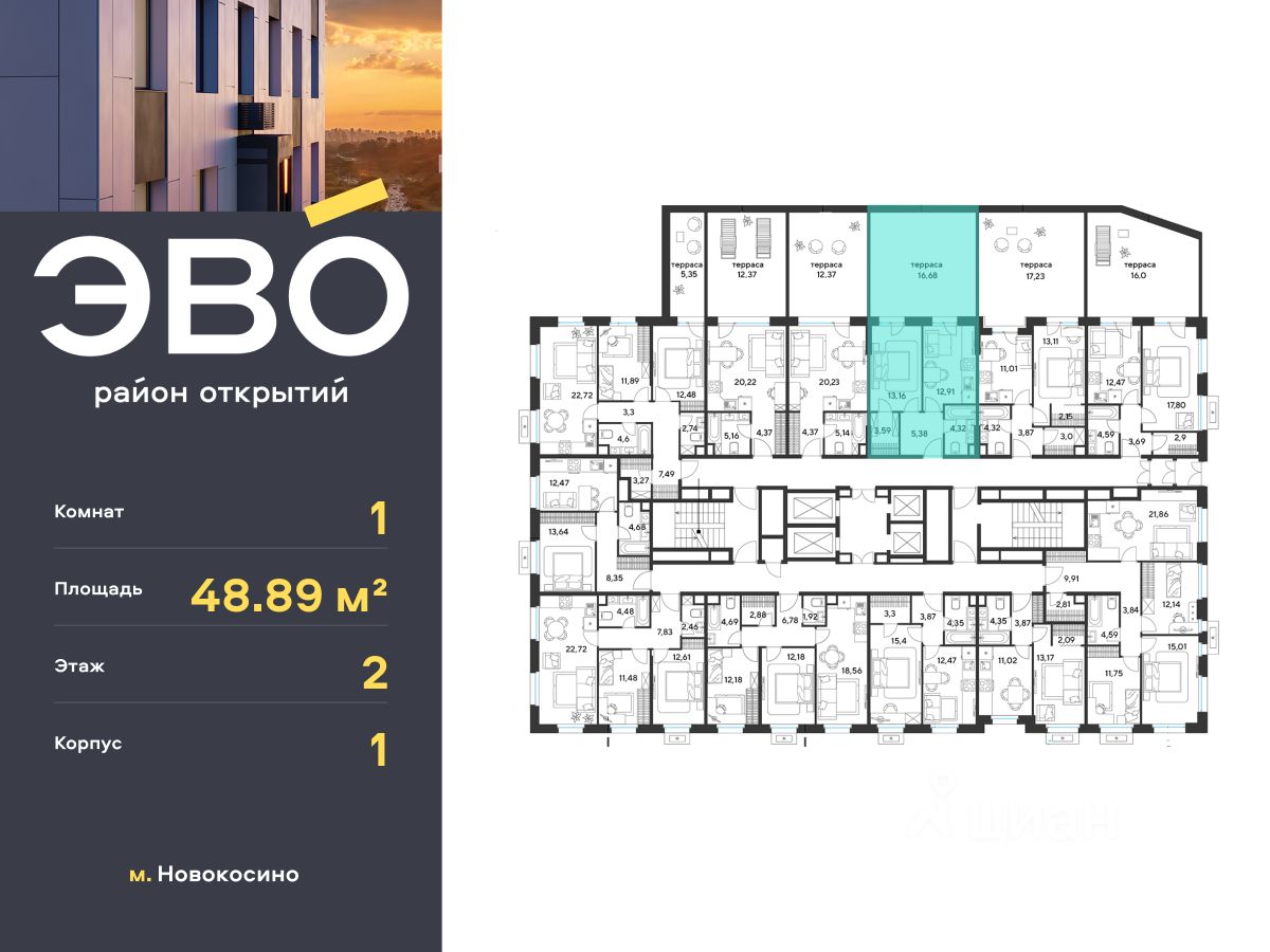Продается однокомнатная квартира 48.89 кв.м. в жилом комплексе ЭВО на 2 этаже по адресу: Московская область, г. Реутов, ул. Комсомольская. Скидка 10% при полной оплате!*