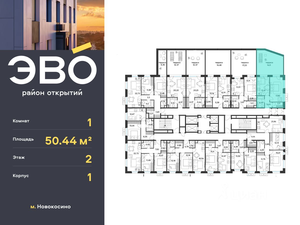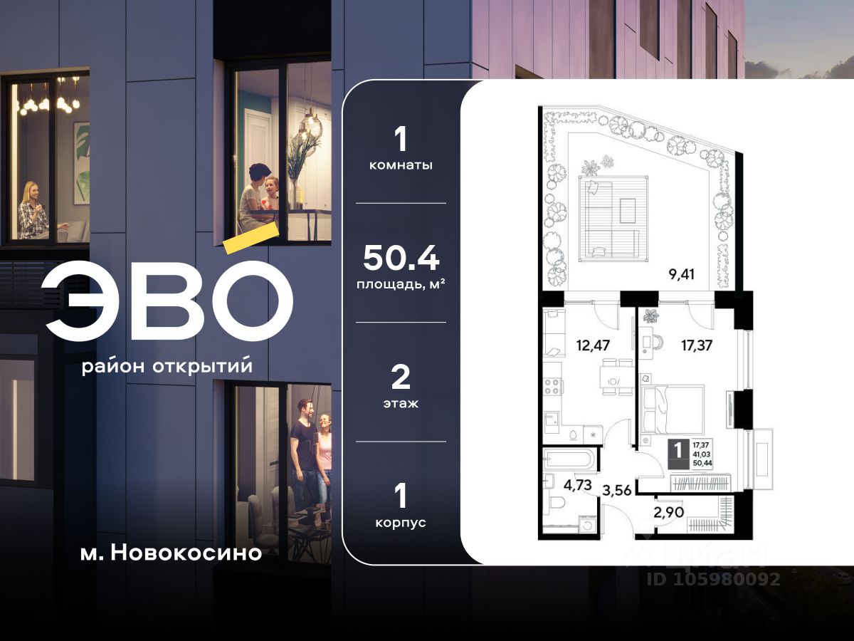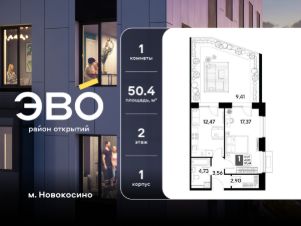 Продается однокомнатная квартира 50.44 кв.м. в жилом комплексе ЭВО на 2 этаже по адресу: Московская область, г. Реутов, ул. Комсомольская. Скидка 10% при полной оплате!*