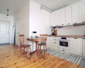 Дом 2015 год). чистый подъезд. Ремонт в квартире делала проф. бригада. У меня есть гора фото, если вам нужно. в тч Как и какие трубы проложены и тд. Натуральный деревянный пол - цельные доски. и пять слоев коробельного лака. Стены выравнивали. Потолок натяжной. Окна в пол, дверь двойная на балкон. Останется кухня , мебель в ванной, кондиционер, камин на балконе (имитация камина).