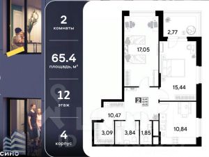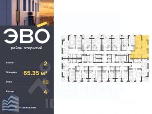 Продается двухкомнатная квартира 65.35 кв.м. в жилом комплексе ЭВО на 12 этаже по адресу: Московская область, г. Реутов, ул. Комсомольская в ЖК ЭВО - проекте комфорт-класса от девелопера Dogma.