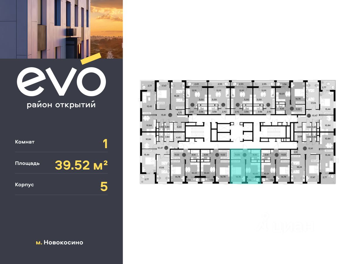 Продается однокомнатная квартира 39.52 кв.м. в жилом комплексе ЭВО на 25 этаже по адресу: Московская область, г. Реутов, ул. Комсомольская. Скидка 10% при полной оплате!*
