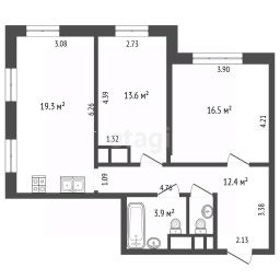- Простор и уют: трехкомнатная квартира общей площадью 70 кв.м., расположенная на высоте 21 этажа 25-этажного кирпичного дома, построенного в 2012 году.