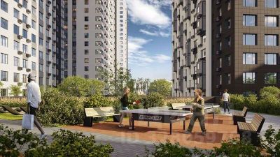 - Зона уличных тренажеров, столы для пинг-понга, места для занятия йогой. велодорожки и дорожки для скандинавской ходьбы.