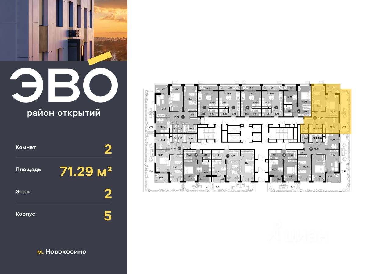 Продается двухкомнатная квартира 71.29 кв.м. в жилом комплексе ЭВО на 2 этаже по адресу: Московская область, г. Реутов, ул. Комсомольская. Скидка 10% при полной оплате!*