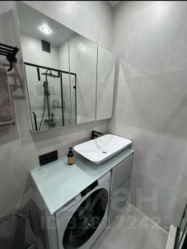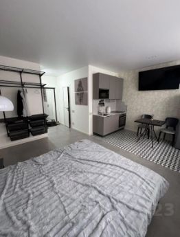 В квартире выполнен дизайнерский ремонт с использованием качественных материалов. Пространство организовано таким образом, чтобы максимально использовать каждый квадратный метр. Встроенная мебель и техника делают эту студию не только стильной, но и уютной. Совмещенный санузел оборудован всем необходимым для комфортного проживания.