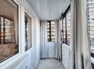 Большая просторная утеплённая лоджия с панорамными окнами, выходящими во двор.