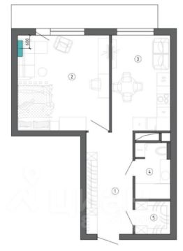 - Застекленная лоджия 5 кв. м. на всю длину квартиры