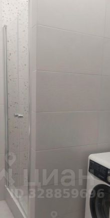 3. Стильный современный санузел оборудованный встроенной душевой кабиной, навесной тумбой , полотенцесушителем с таймером, унитаз инсталяция, стиральная машина.