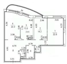 - 3 изолированных комнаты: 22,6 м2, 22,3 м2 и 14,3 м2