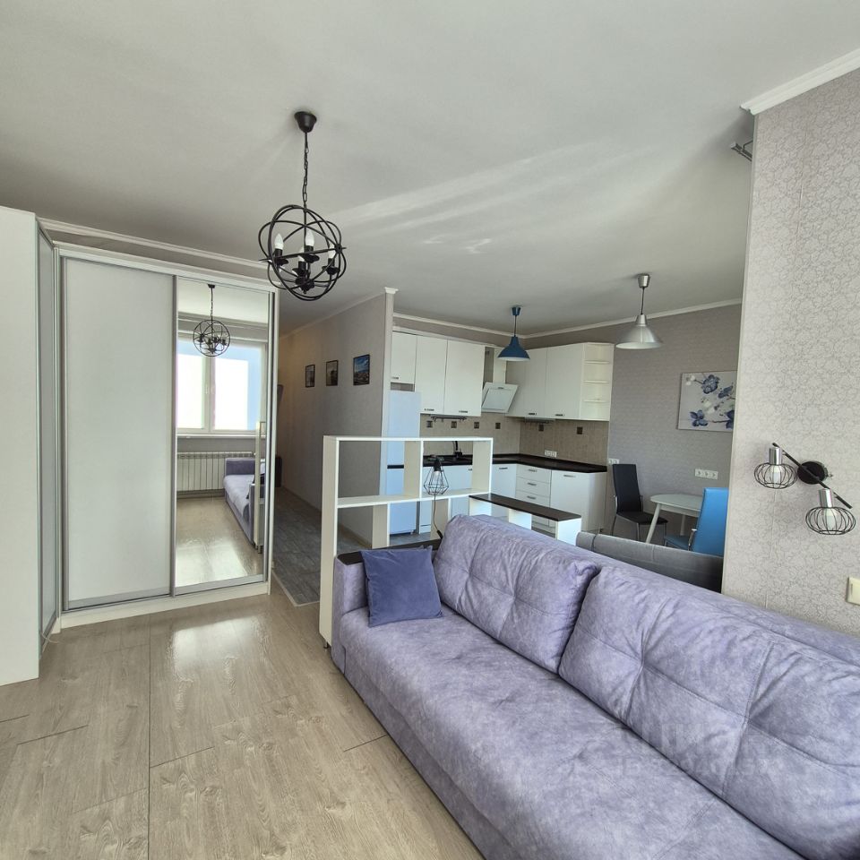 В квартире сделан качественный стильный евроремонт, который позволит вам сразу заселиться без дополнительных вложений. По площади это полноценная однокомнатная квартира с двумя окнами. Студийная планировка со вкусом зонирована на кухонную зону и зону гостиной. Просторная кухня площадью 10 кв. м оборудована всем необходимым для комфортного проживания. Санузел совмещенный, выполнен в современном стиле. Из окон открывается прекрасный панорамный вид во двор, а на просторной лоджии можно обустроить зону отдыха.