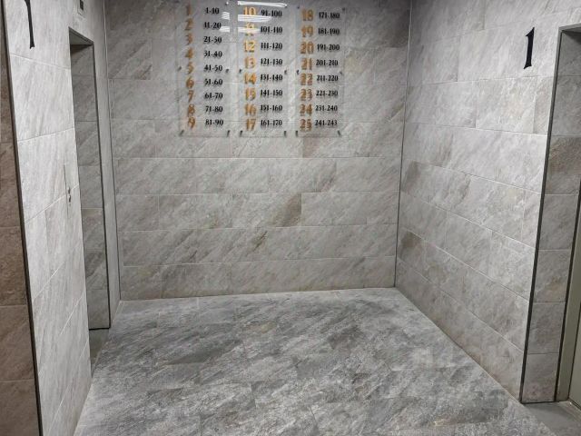 Расположена на 14м этаже монолитного дома 2024 года постройки.